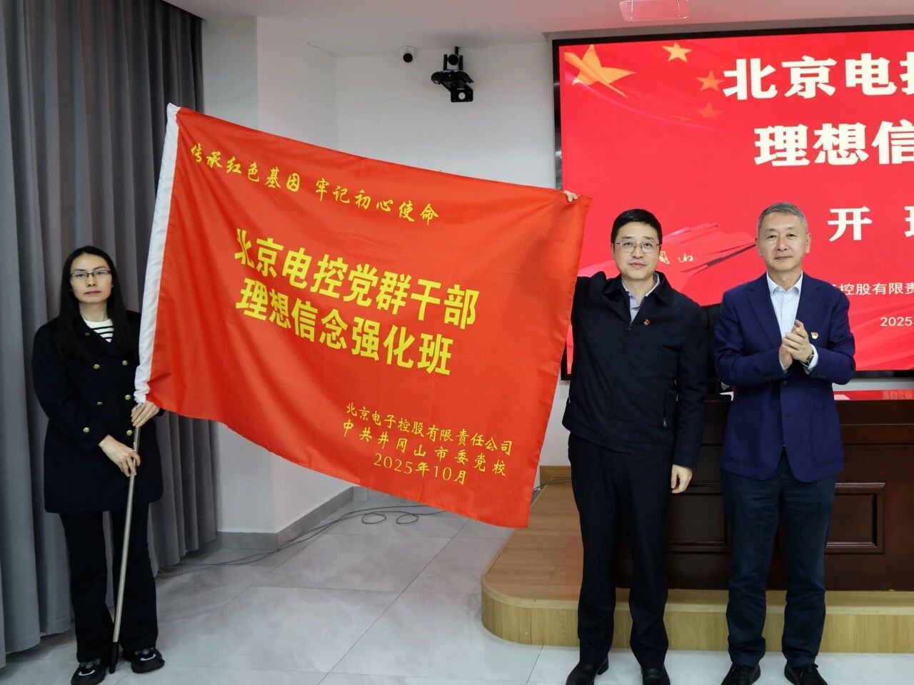 陈勇利在开班仪式上指出,全体学员要深刻领悟井冈山精神,进一步夯实思想根基和能力基础,纵深推进各单位党建工作和生产经营深度融合。要聚焦于“新”,精准定位电控产业发展趋势,准确把握电控产业新面貌、新形势、新方向;要立足于“本”,努力夯实国企党建工作根基,进一步深化思想认识、加强组织落实、深化工作成效;要紧扣于“实”,坚决贯彻FH平台第四次党员代表大会精神,推动思想建设与文化育人同频共振,干部队伍建设与人才建设同心共建,基层党建与业务工作同促共进,党风廉政与风险防范同步加强,党的建设和群团工作同向发力。傅波对学员们的到来表示热烈欢迎,他表示井冈山孕育了跨越时空的井冈山精神,勉励全体学员深刻感悟红色土地承载的厚重历史,结合新时代产业发展需求让井冈山精神焕发新光芒。随后,皮强郑重将象征着使命与传承的班旗授予学员代表,激励学员们踏上追寻初心的征程。