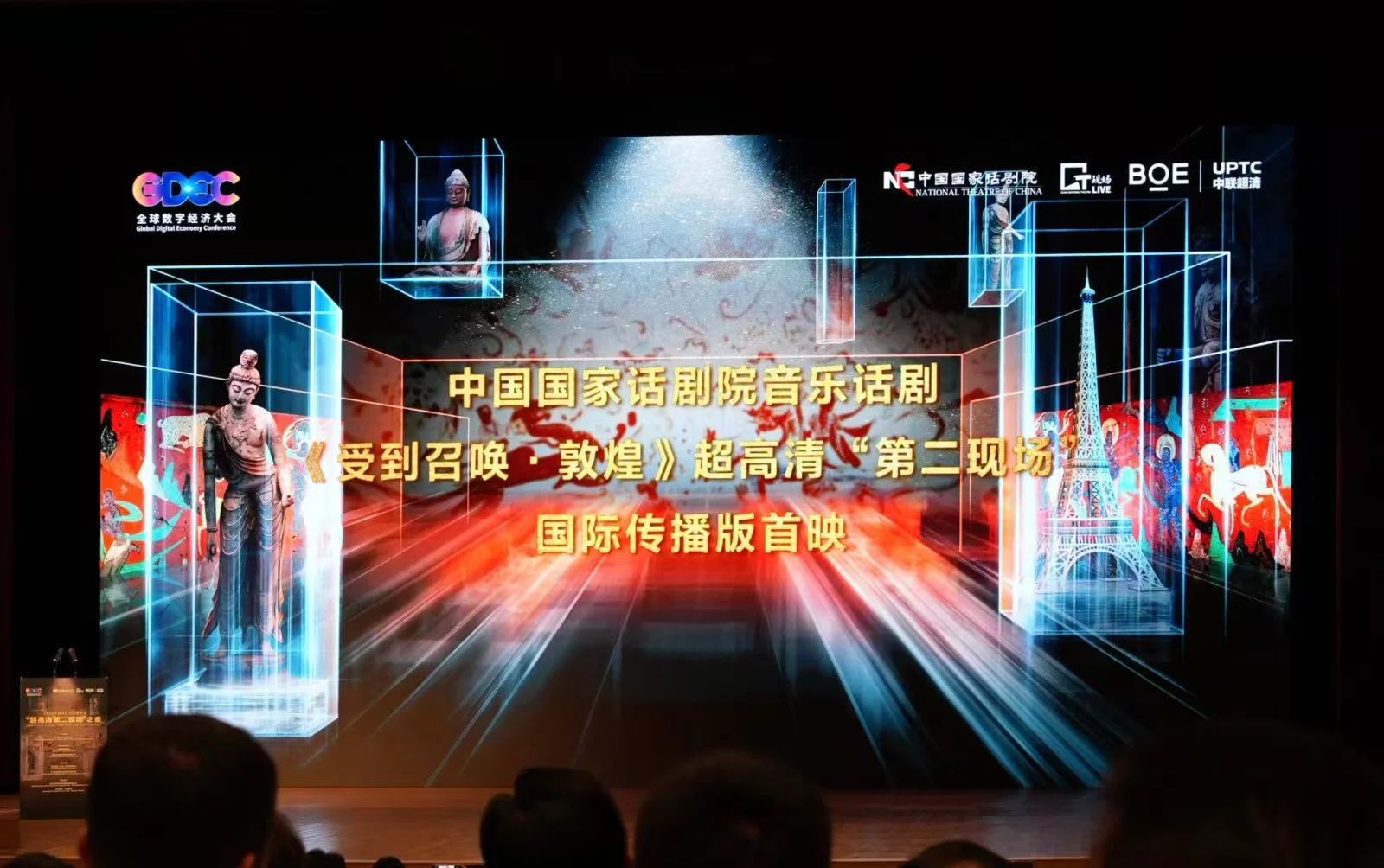 7月2日晚,由京东方中联超清联合国家话剧院打造的音乐话剧《受到召唤·敦煌》超高清第二现场国际传播版在2025全球数字经济大会“超高清第二现场之夜”特别活动成功首映。京东方中联超清“ULive超现场”平台为该剧提供超高清内容制作与测试、8K超分修复、ULive高可靠传输、超高清沉浸呈现等全链路技术服务,实现艺术即演即拍即编,实时传送超高清内容,突破时空限制,为观众沉浸还原了该剧璀璨瑰丽的舞台艺术世界。在“数字友好城市建设全球对话会”主论坛上,京东方中联超清“8K超高清第二现场(超现场)数字视听服务”技术体系成功入选2025全球数字经济大会数字经济标杆应用案例“十大案例”。此外,京东方旗下的UBP恒通国际商务园,在本次大会上正式被命名为“京东方未来显示产业园”,将进一步聚焦于超高清产业的集聚、培养和创新,通过覆盖技术融合、基础设施、内容生产及终端产品等关键环节,推动打造成为集历史文化体验中心、新型显示应用场景体验区于一体的综合性平台。